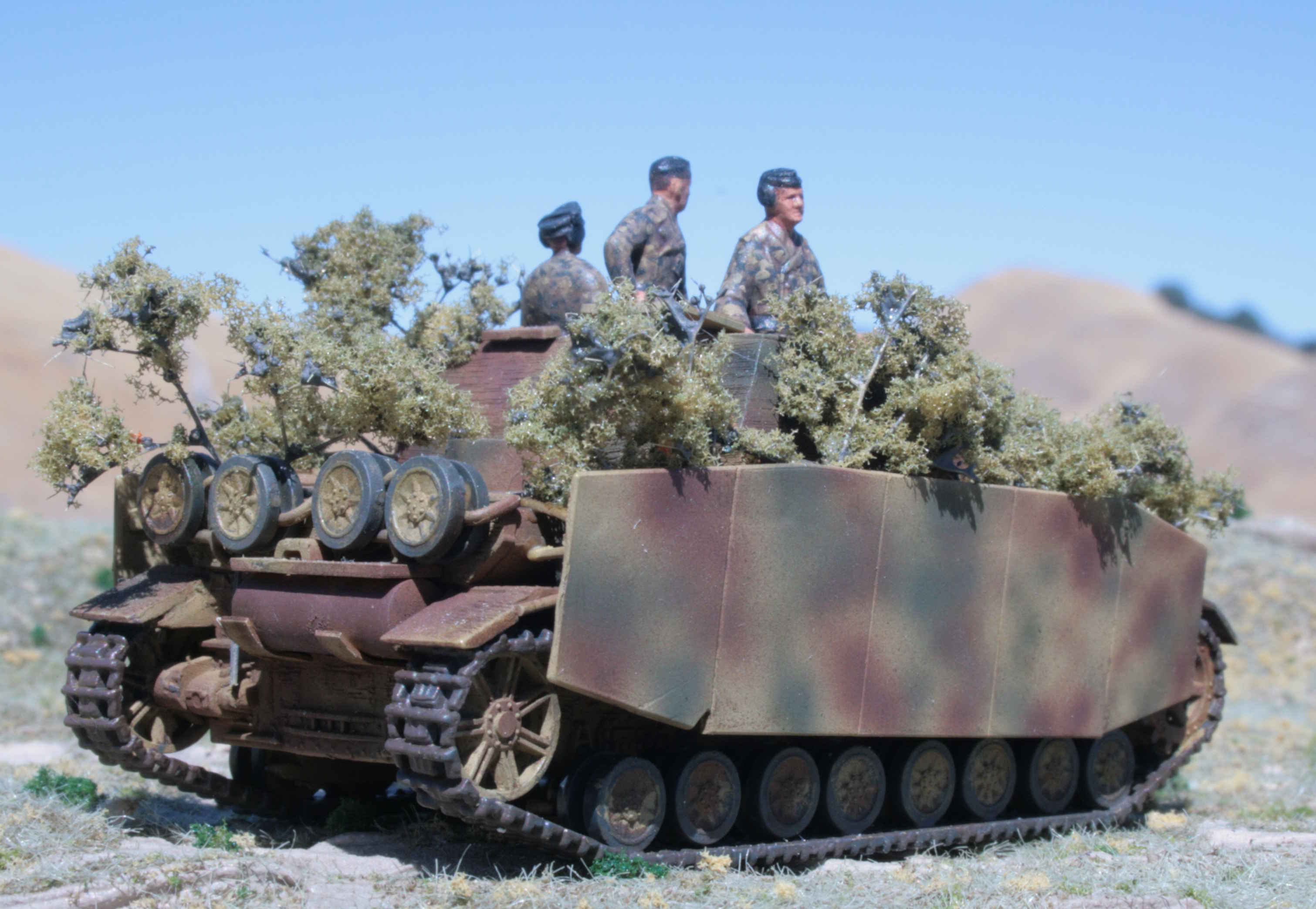 | 1/72 ESCI Brummbar. | Zimmerit added. | Figures added from spares box. | Late war German vehicles often had branches added as camo. | ||||