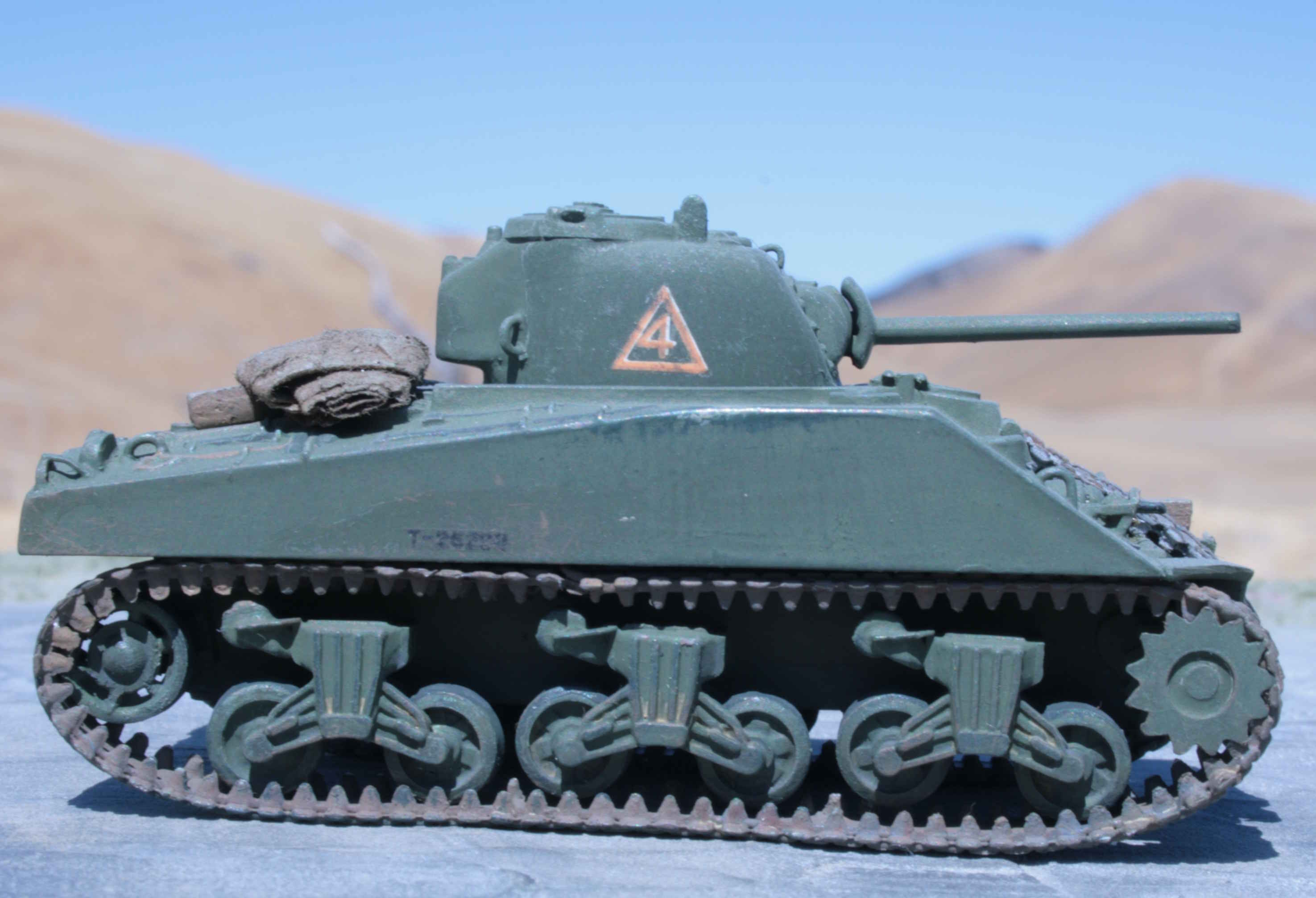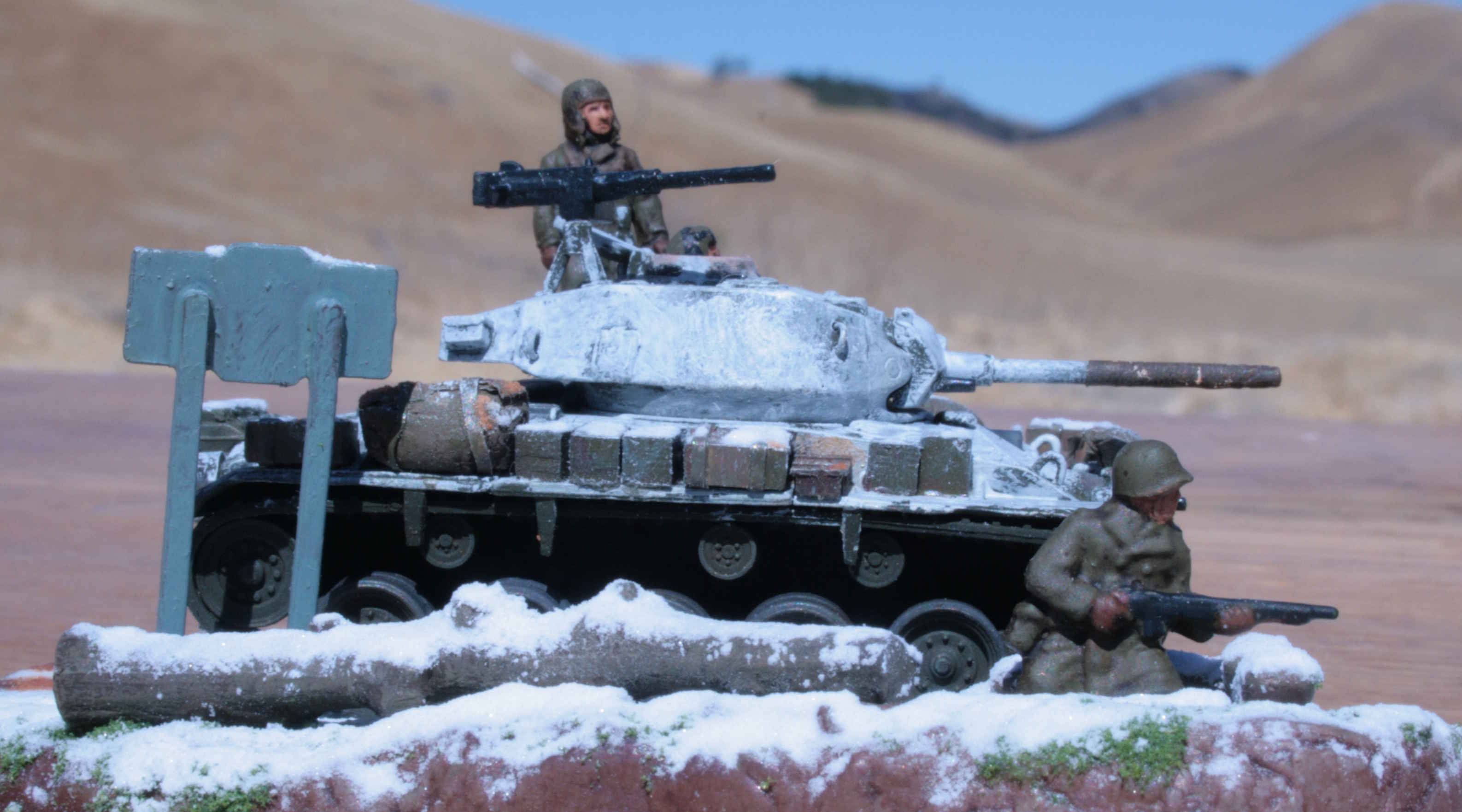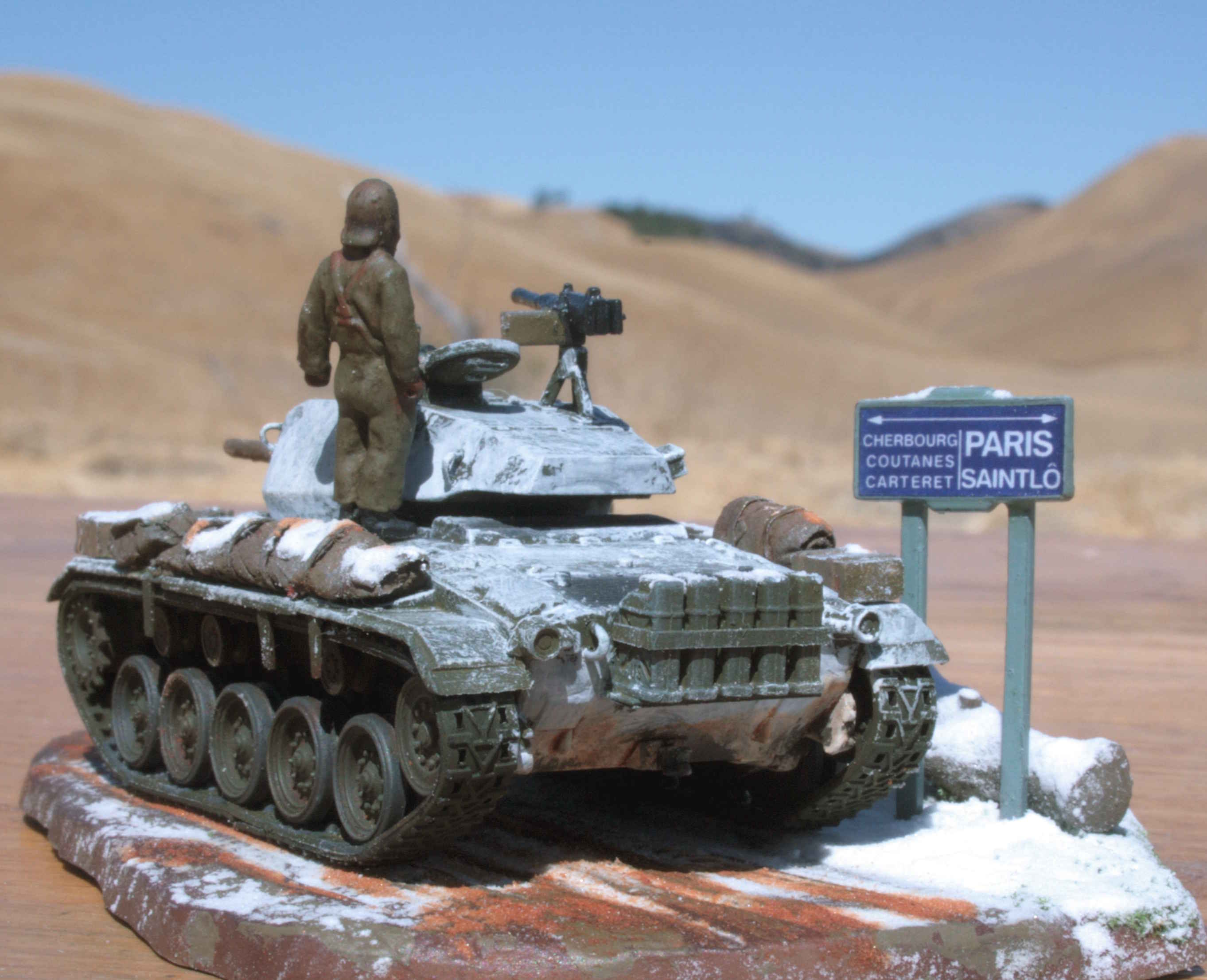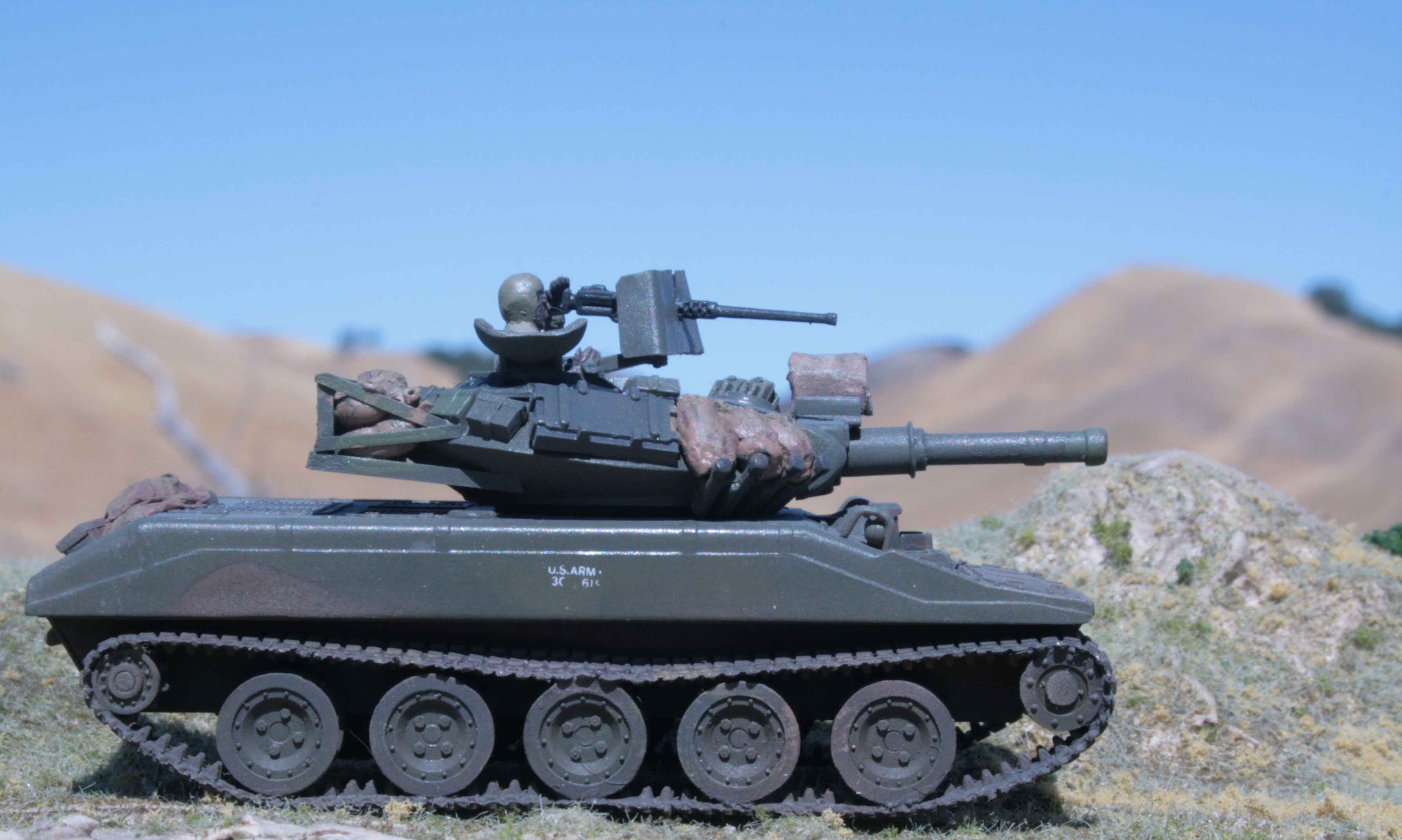 | 1/76 Revell/Matchbox Chaffee. | Added figures for interest. | Removed post-war stowage bins from fenders. | Loaded up as per wartime vehicles in 1944/45. | ||||
