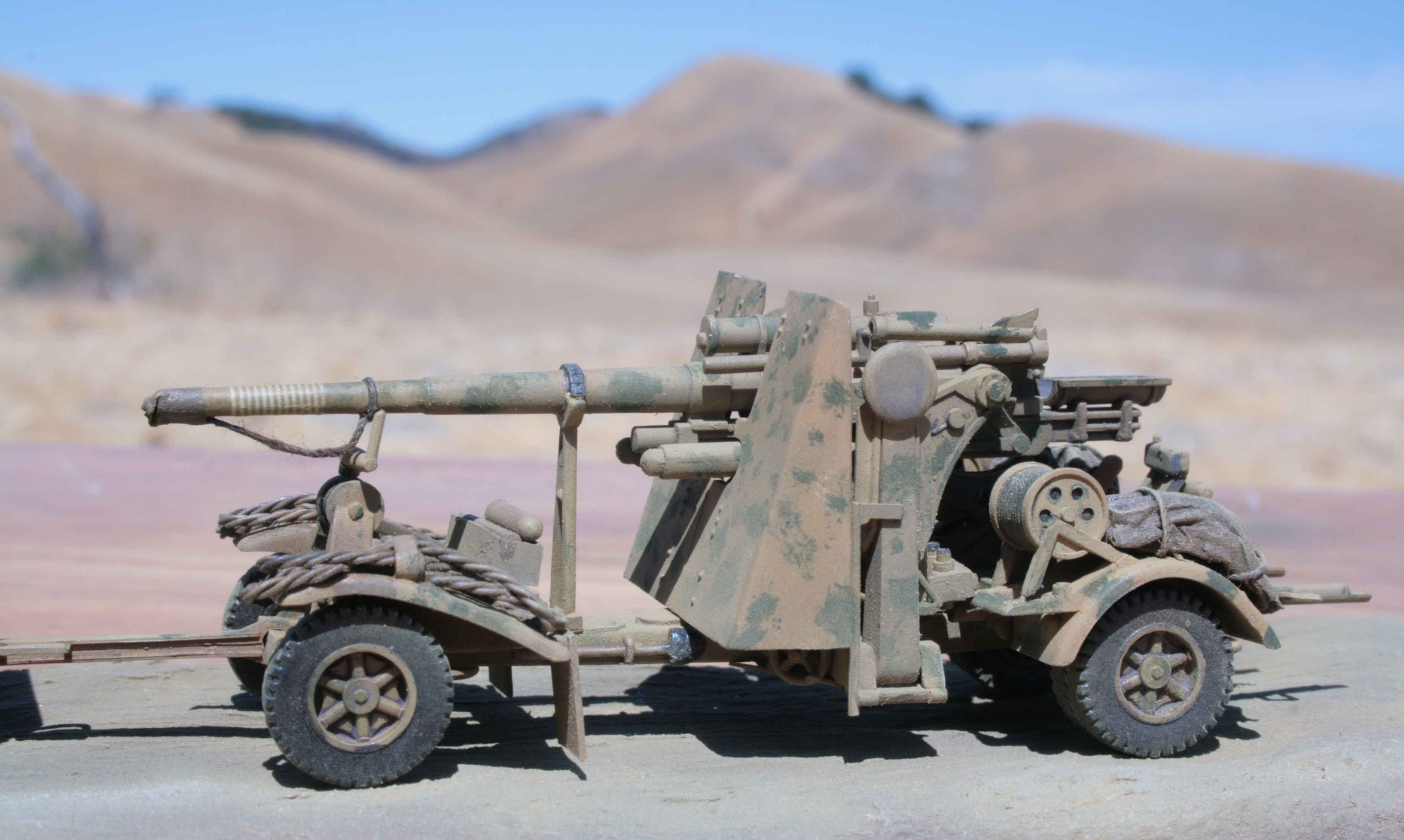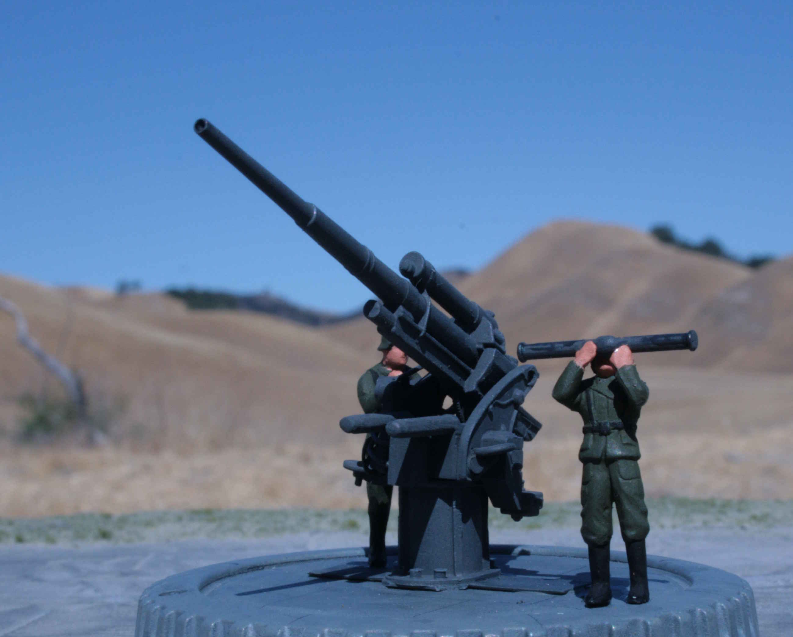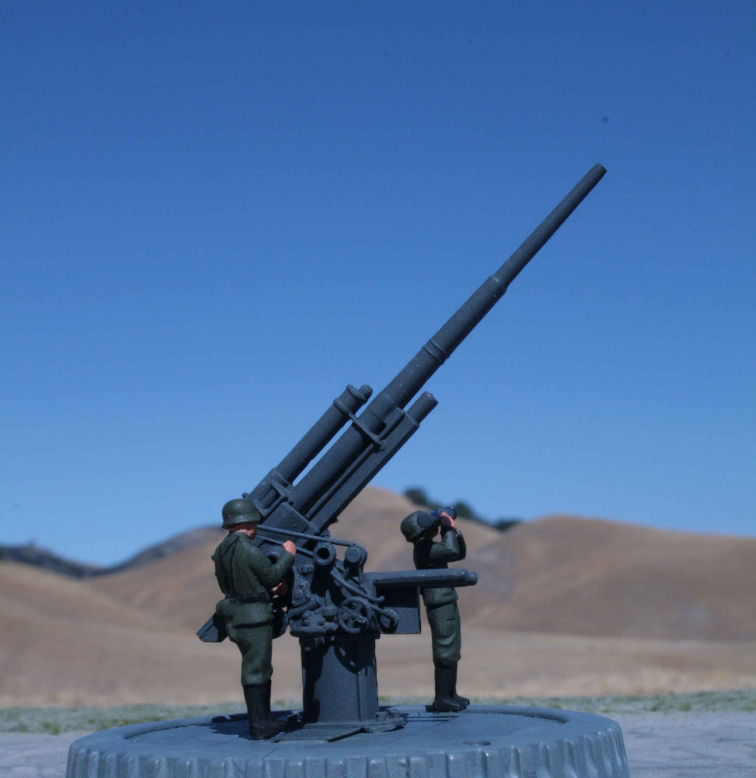 | 1/76 Airfix Flak 36 ground-mounted | More 88s were static AA mounts, so I adapted an Airfix 88 | Used a plastic cap to simulate a concrete pad | |||||
