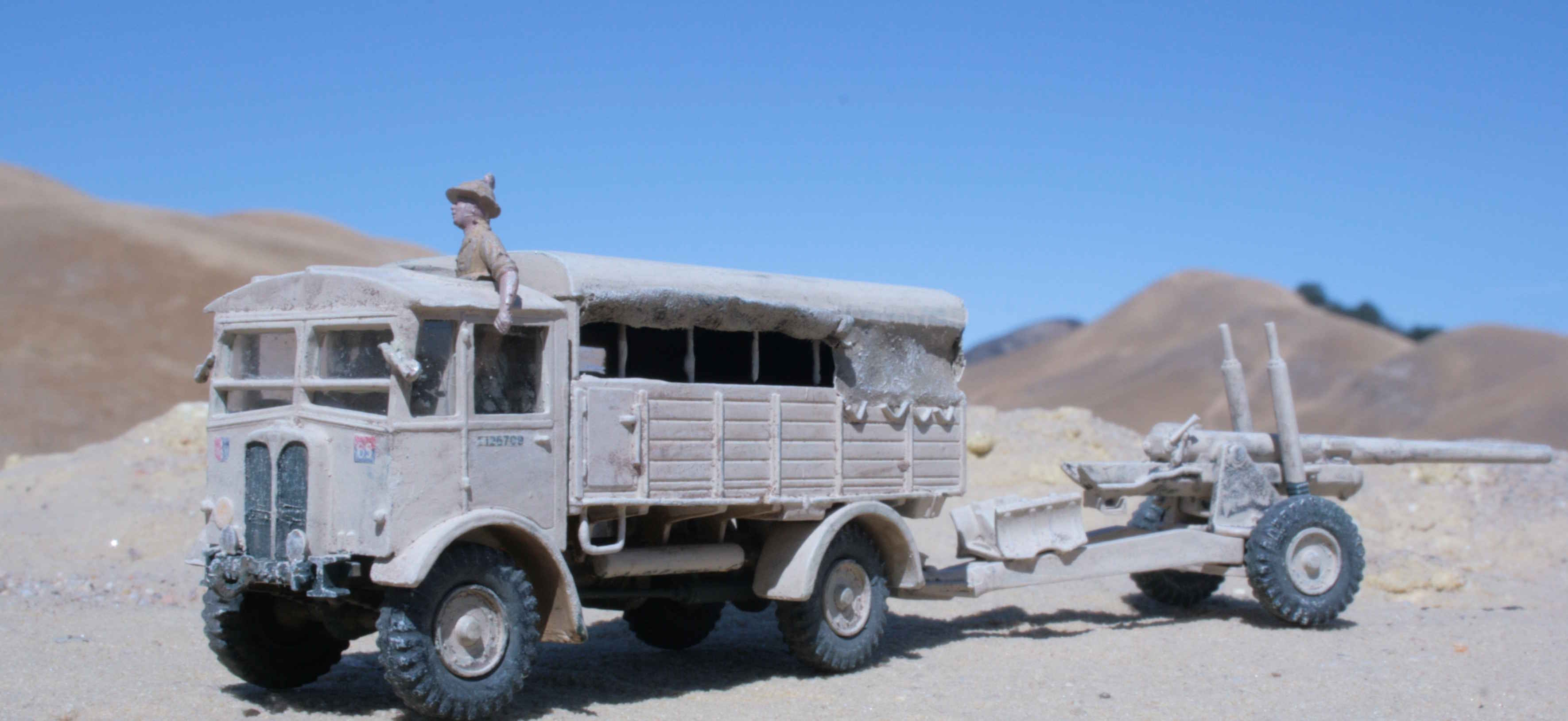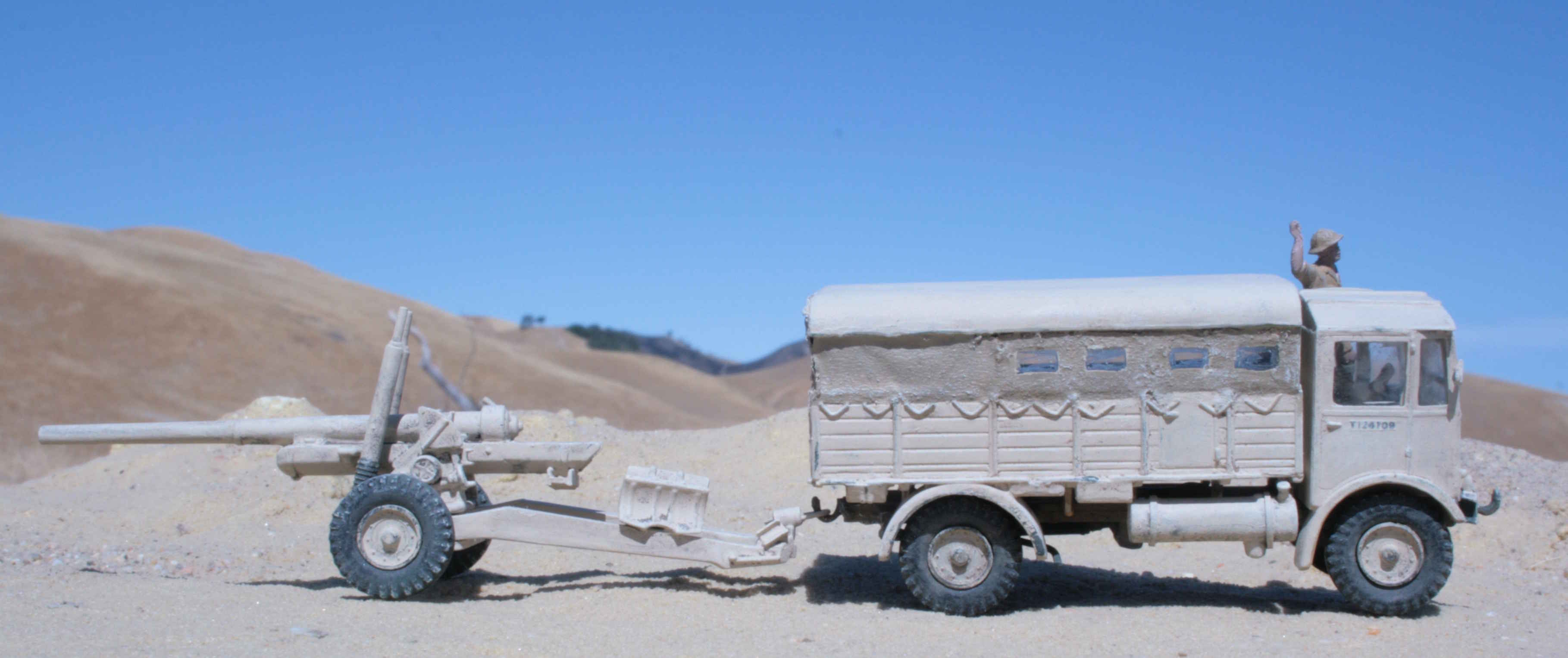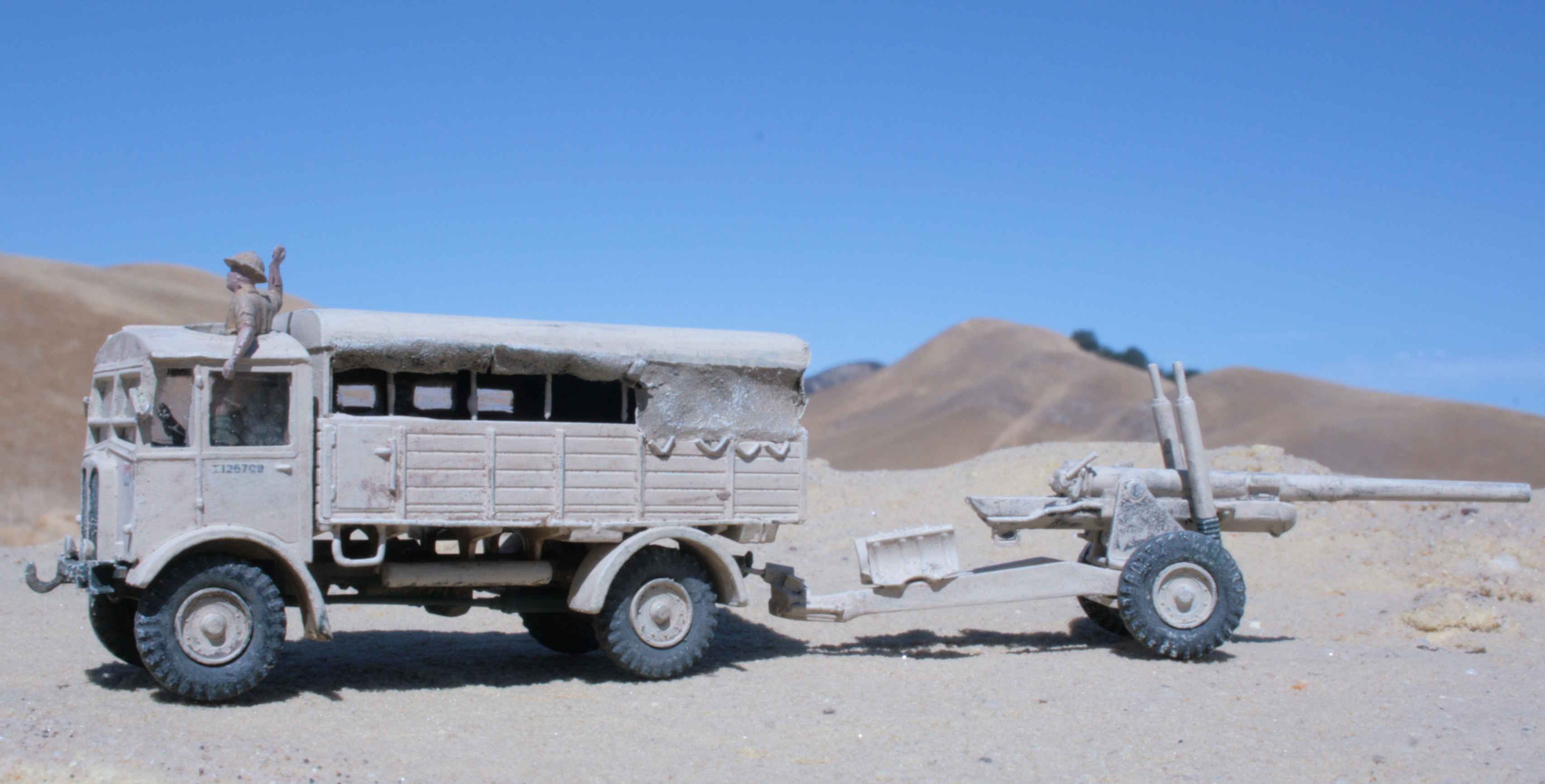 | New and much better pictures of the 1/76 Airfix Matador and 5.5 inch gun | Given a desert finsh. | Open sides per photo references. | Added 'glazing'. | ||||