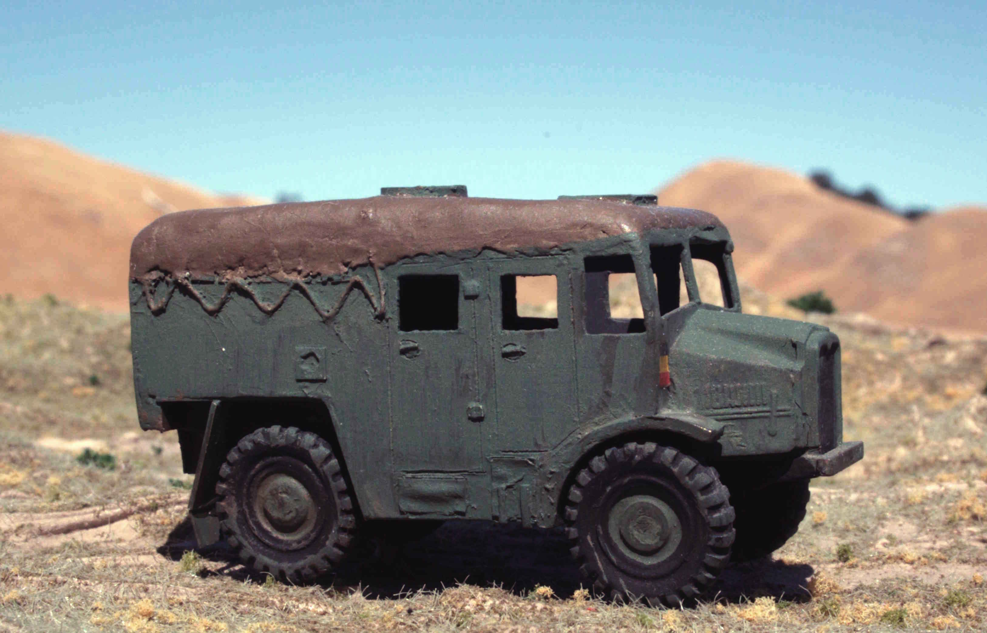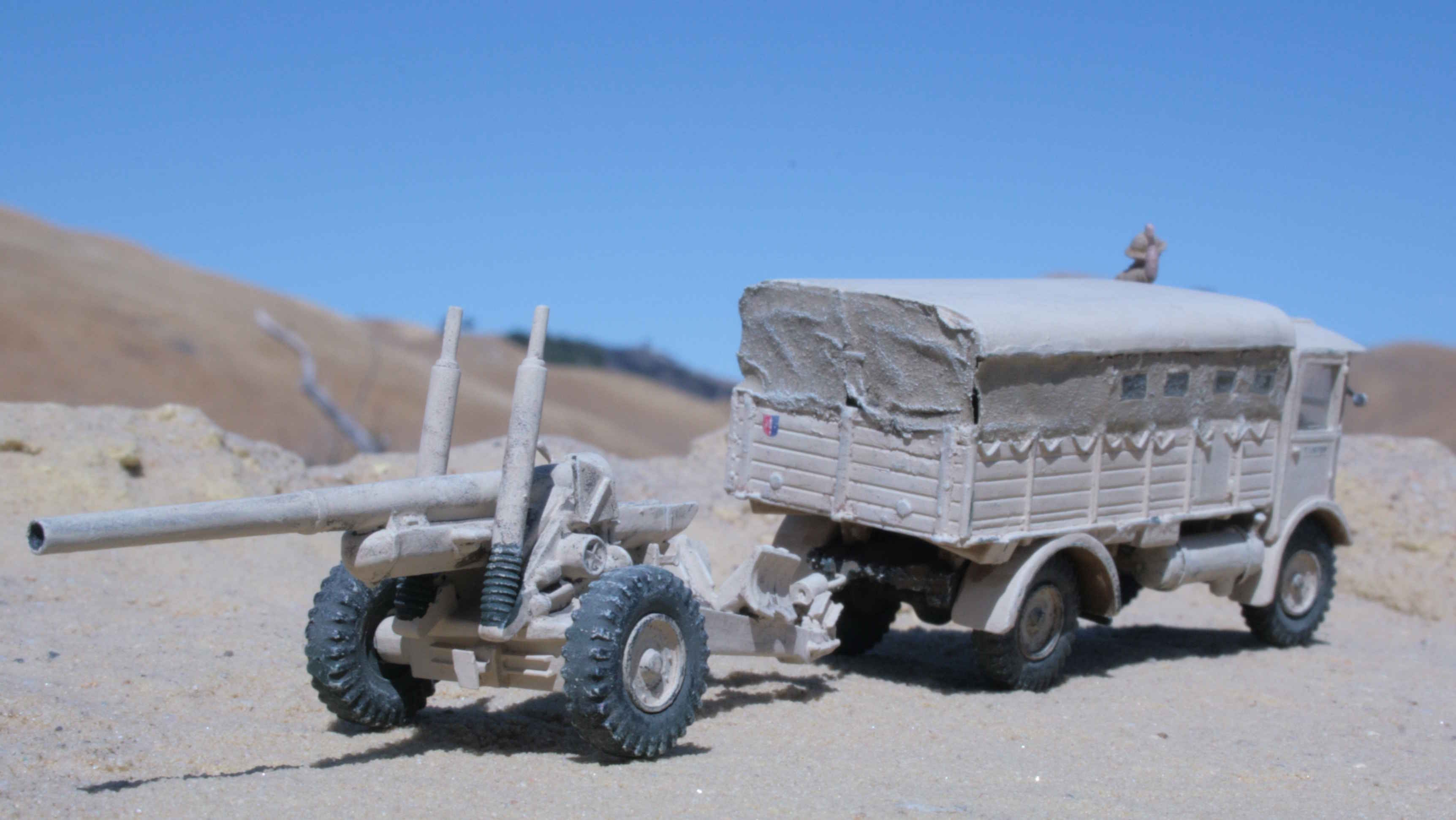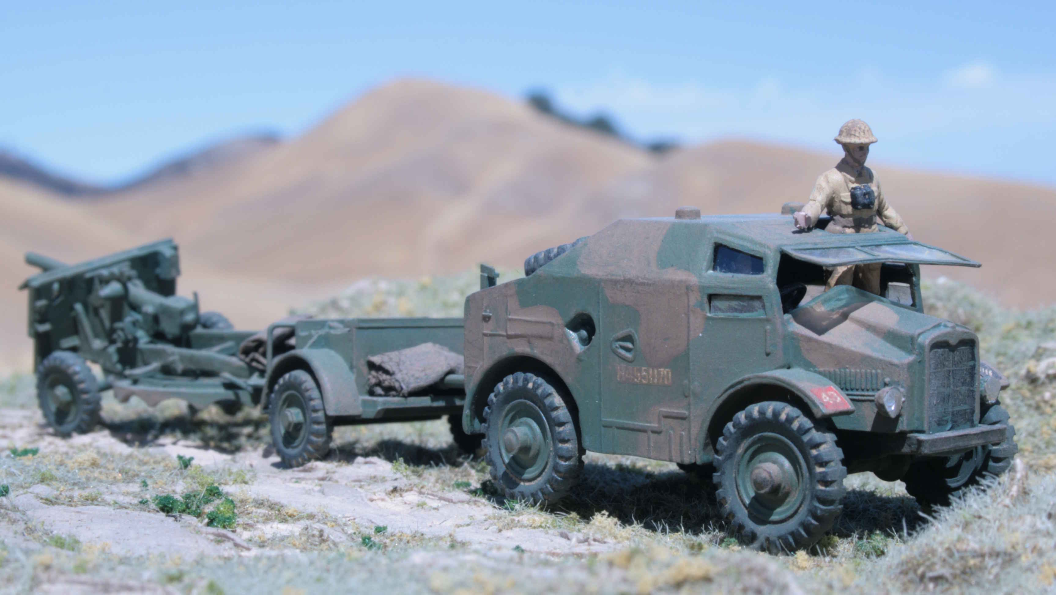 | New and much better pictures of the 1/76 Airfix Matador and 5.5 inch gun | Given a desert finsh. | Open sides per photo references. | Added 'glazing'. | ||||
