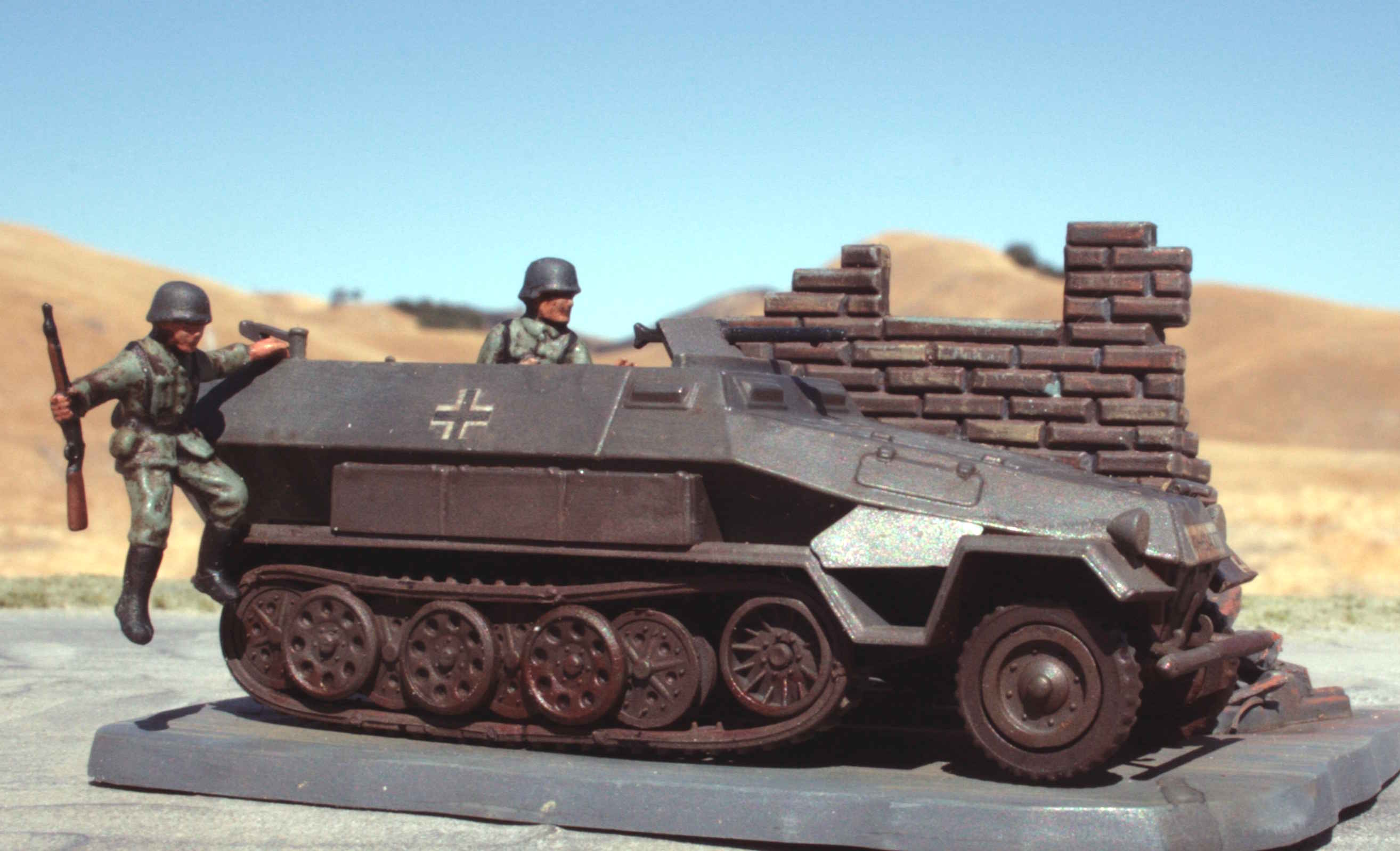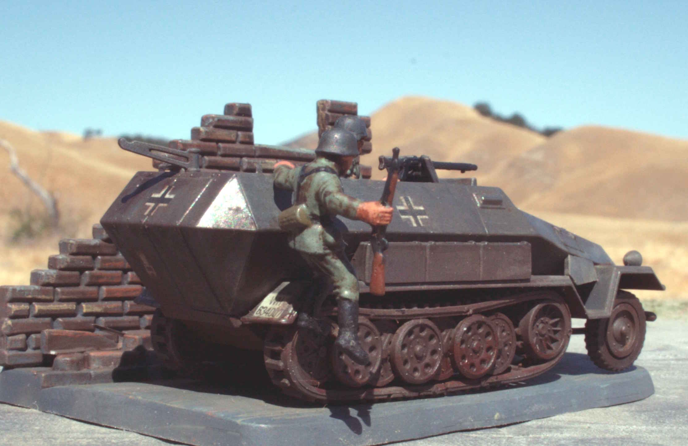 | 1/76 Revell/Matchbox SdKfz_251 | Comes with its own base. | The soldier leaping off the back is a nice touch. | |||||